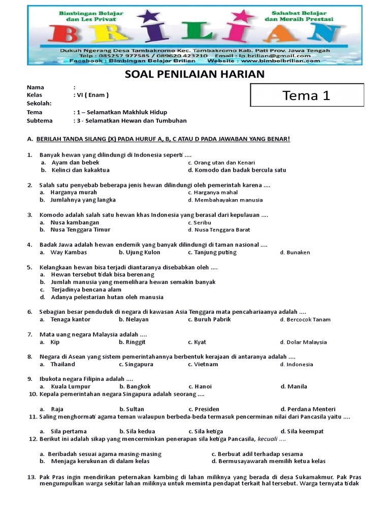 Untuk memastikan pemahaman kalian semakin kokoh dan siap menghadapi berbagai tantangan belajar, artikel ini hadir sebagai sahabat setiamu. Kami telah menyiapkan kumpulan soal latihan yang bervariasi dan menarik, mencakup berbagai aspek penting dalam Subtema 3. Mari kita mulai petualangan belajar yang seru ini!