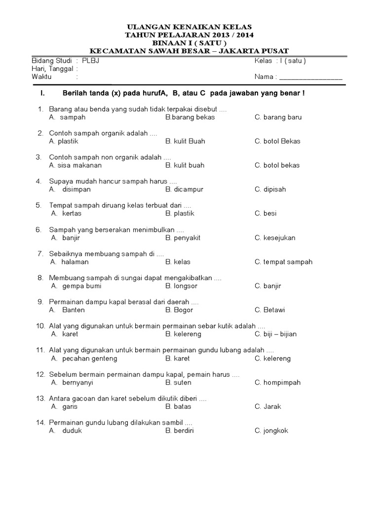 Bank soal PLBJ kelas 1 SD semester 2 adalah instrumen pendidikan yang sangat vital. Lebih dari sekadar alat evaluasi, ia berfungsi sebagai pilar penguatan karakter, pemahaman budaya lokal, dan cinta lingkungan sejak dini. Dengan penyusunan yang cermat, strategi penggunaan yang optimal, serta kolaborasi antara guru dan orang tua, bank soal ini dapat menjadi jembatan efektif untuk menanamkan nilai-nilai luhur Jakarta kepada generasi penerus. Melalui bank soal yang terstruktur, kita tidak hanya mengukur pengetahuan anak, tetapi juga turut serta membentuk warga Jakarta yang bangga akan identitasnya dan peduli terhadap lingkungannya.